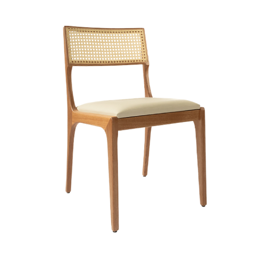 Produzida em madeira maciça de jequitibá, a estrutura robusta garante durabilidade e refinamento, enquanto o encosto em tela sextavada natural proporciona leveza visual e conforto térmico. Com acabamento em natural, a Cadeira Yasmin se adapta perfeitamente a diferentes estilos de decoração do rústico ao contemporâneo.